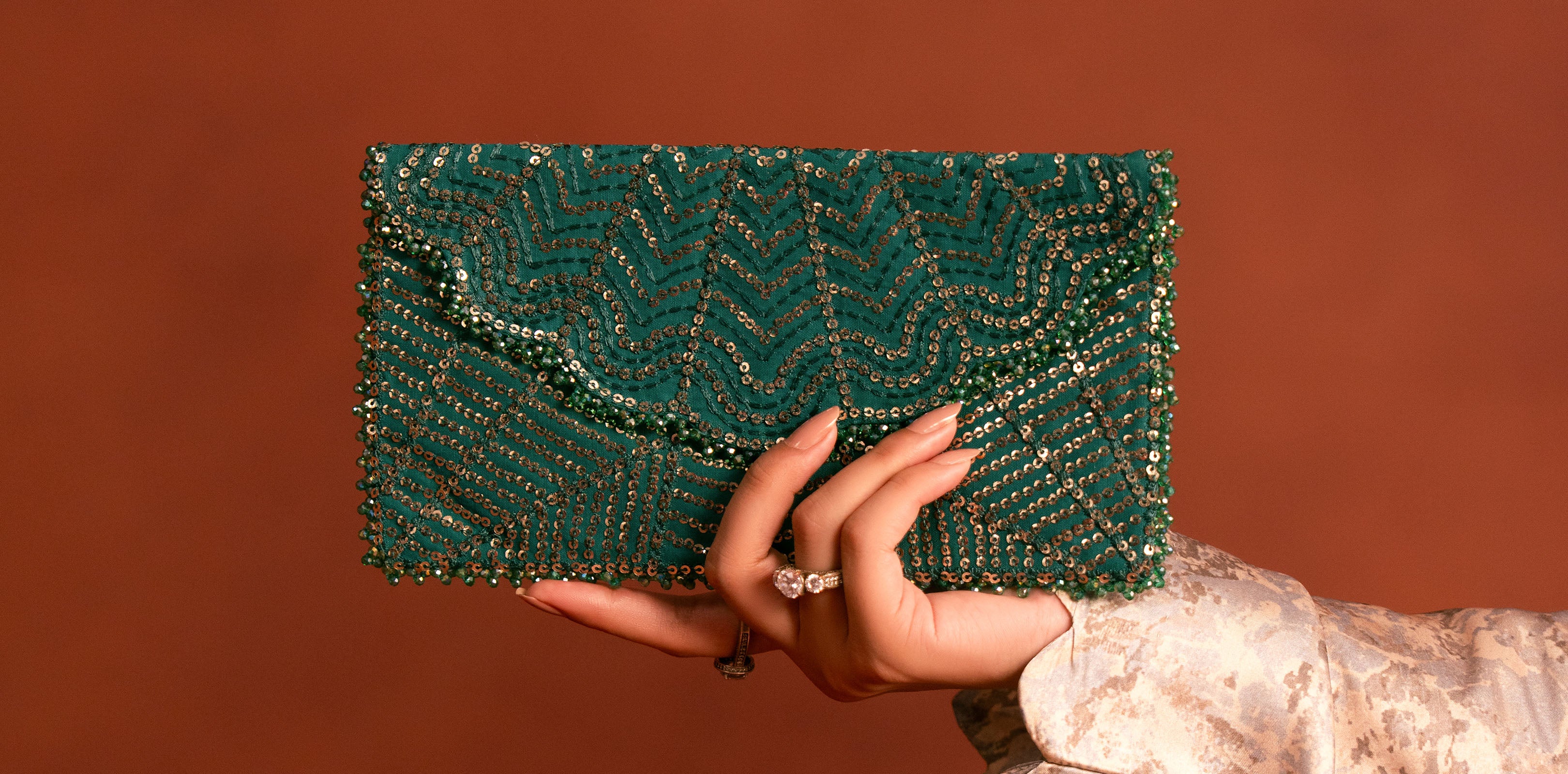SARI EDIT '25 - CORAL CHATTA PATTI ENVELOPE BAG