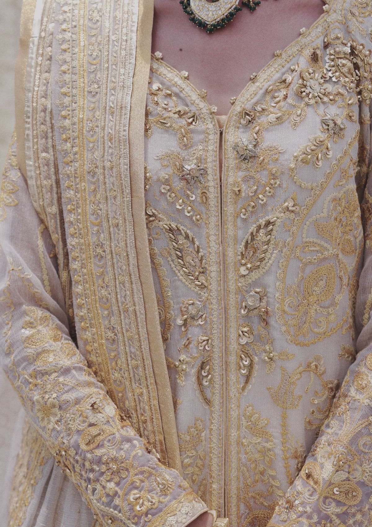 - Embellished + Embroidered Organza Sleeves Border